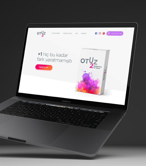 Bir fazlasının erkeklerin cinsel hayatına kökten değiştirdiği OTUZ2’nin ismini bulmanın yanında ambalajlarını tasarladık, sosyal medya hesapları için bir dil ve tarz oluşturduk, web sitesini tasarladık.